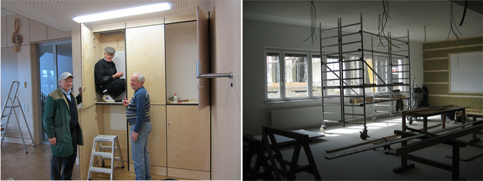 - Die Einbauschränke bieten ausreichend Platz für Noten, Uniformen und Instrumente.